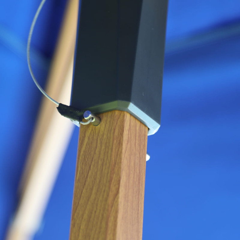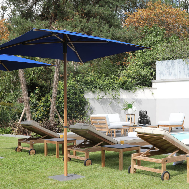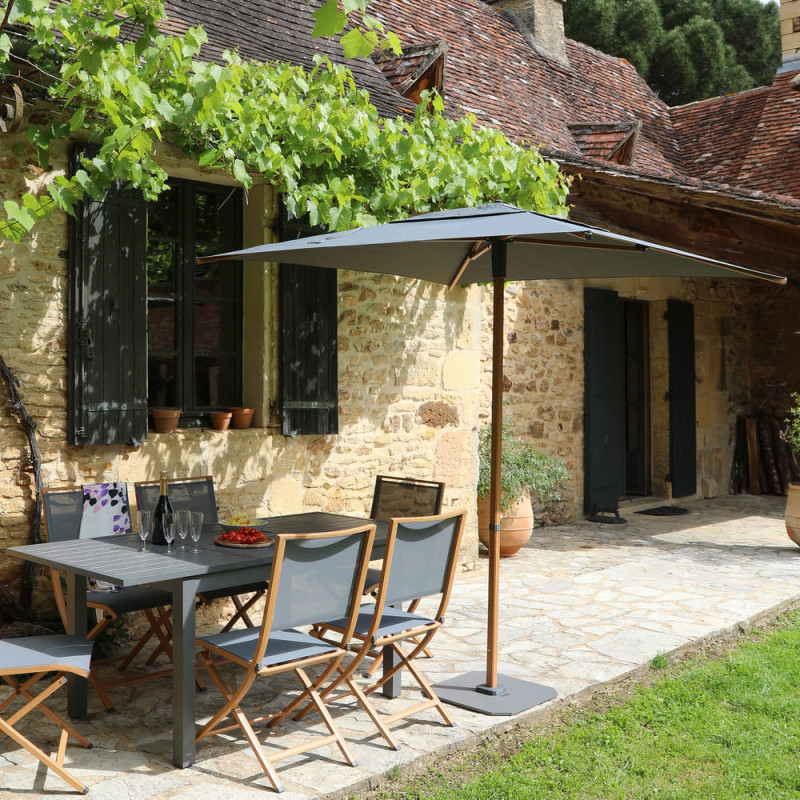 Le parasol DORADO structure Aluminium (transfert teck) et toile Sunbrella® fabriqué par Médicis.