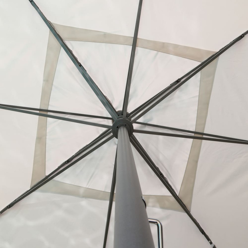 La gamme Nuvola comprend des parasols droits et des parasols déportés. Ces parasols sont conçus pour apporter de l'ombre et du frais avec élégance à votre espace extérieur. Selon les dimensions de votre parasol vous pourrez protéger un transat, un bain de piscine ou bien une table pour 10 personnes.