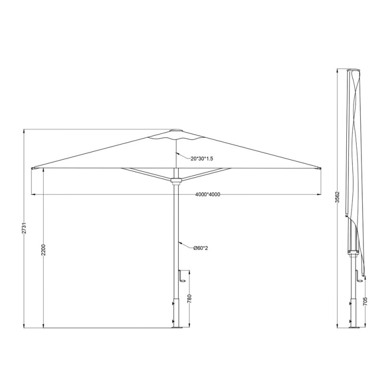Ce parasol droit, de grand format (4m sur 4m), est fabriqué uniquement avec des matériaux haut de gamme.