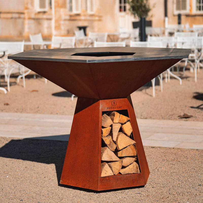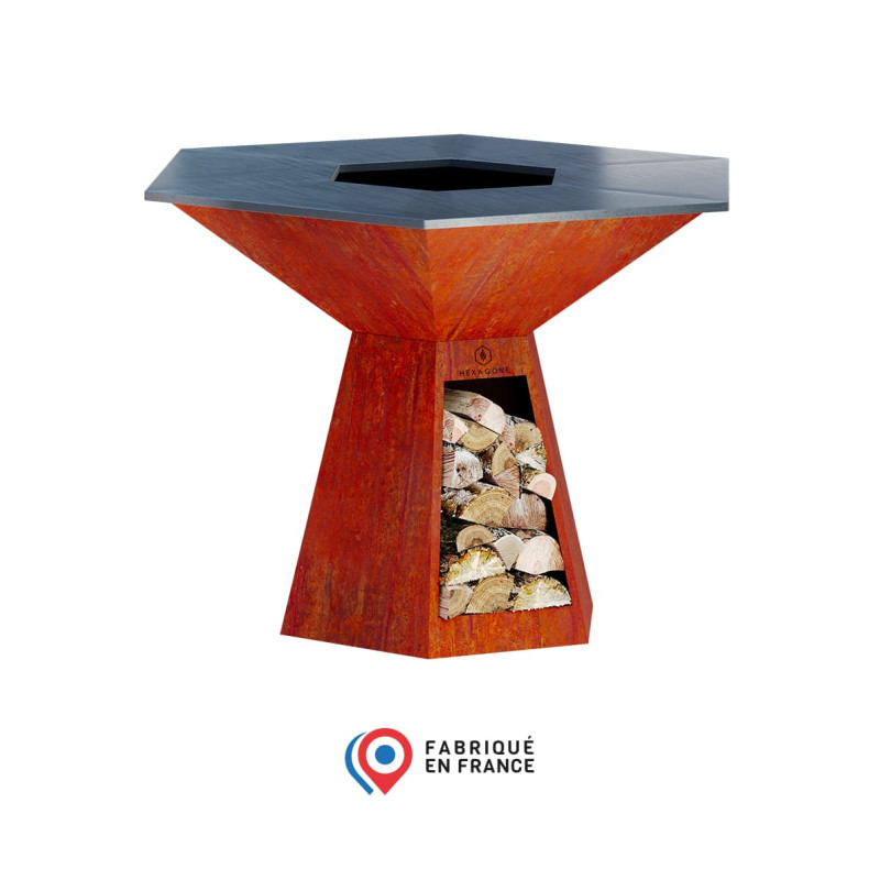 Brasero Plancha modèle "Grand Banquet 150" finition corten fabriqué par Hexagone.