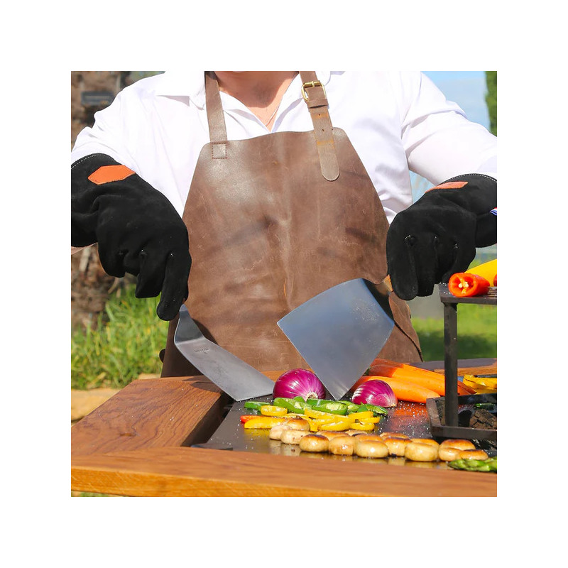 Avec ces gants, vous serez à l'aise pour cuisiner au dessus de la plancha ou de mettre tranquillement les buches dans le foyer.