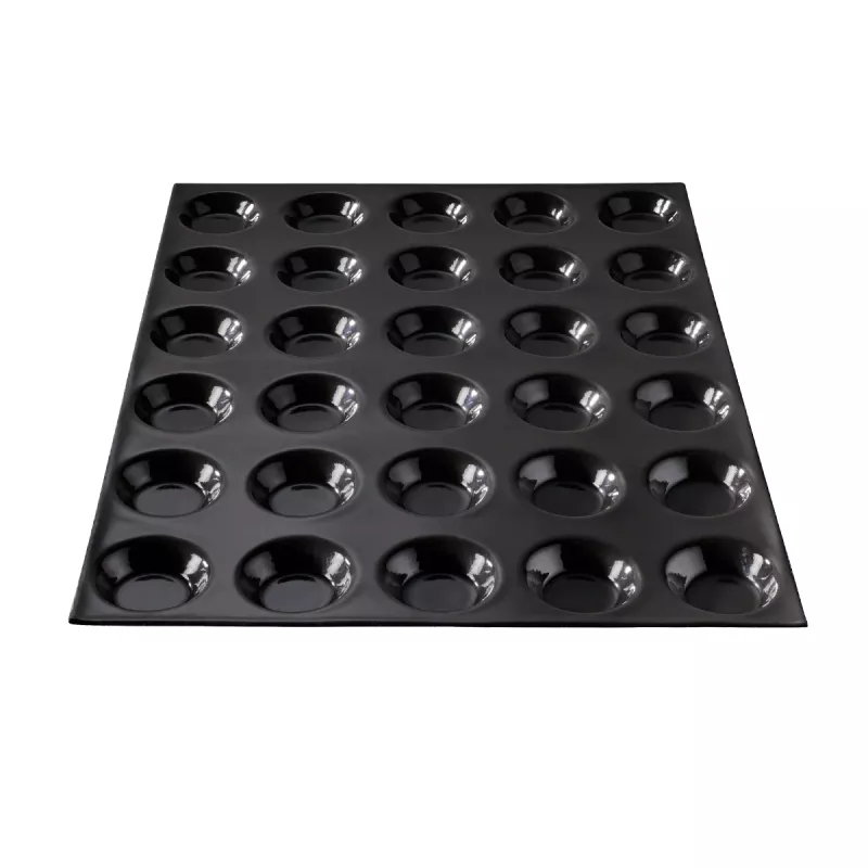 Avec ses 30 empreintes, ce moule permet de réaliser en une seule fois un grand nombre de mini-tartes, idéal pour les grandes occasions ou les professionnels de la pâtisserie.