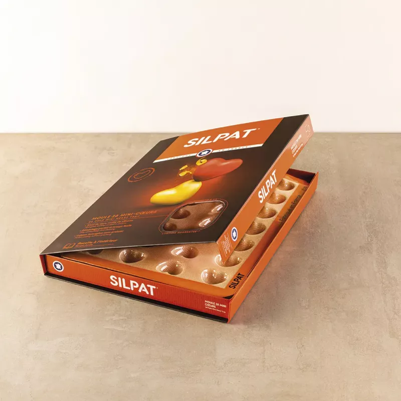 Le Moule pour 28 cœurs, conçu et fabriqué avec amour par l'entreprise Silpat !