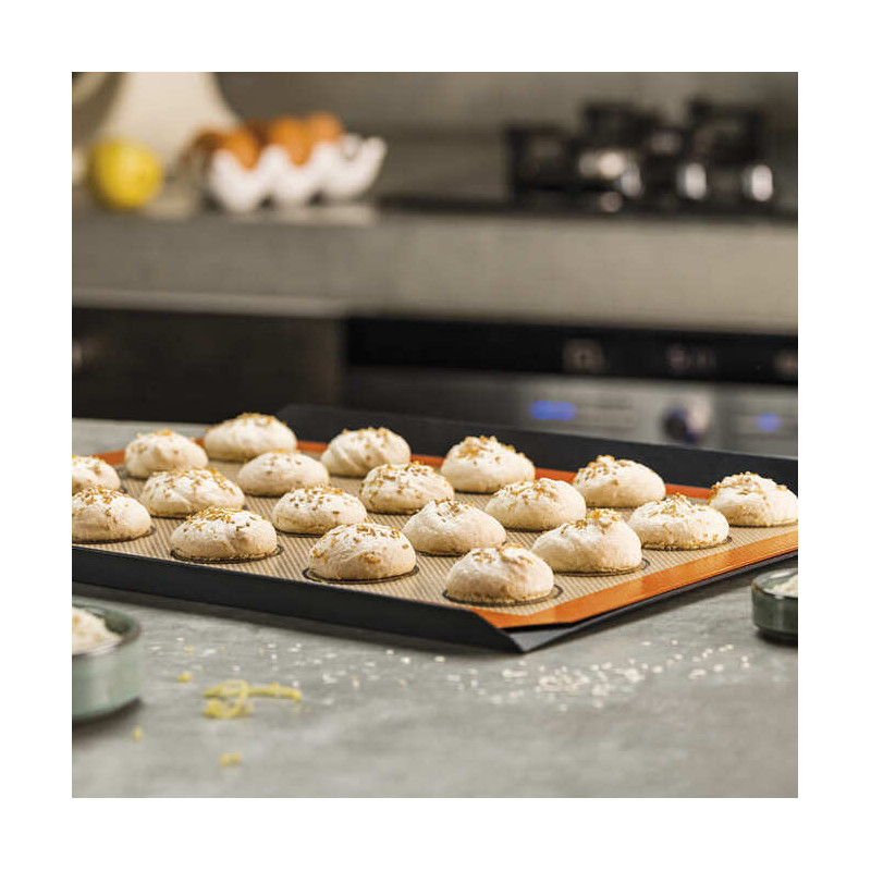 Fini le papier sulfurisé et les désastres de macarons collés au tapis de cuisson ! Grâce à sa surface antiadhésive, vos coques se détachent sans accrocher, sans graissage préalable. Utilisable plus de 2000 fois, c’est aussi plus économique que du papier.