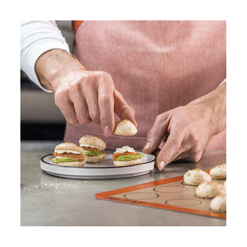 Vous voulez de macarons parfaits, croquants à l'extérieur et fondants à l'intérieur, équipez-vous de la toile spéciale Silpat® macarons.