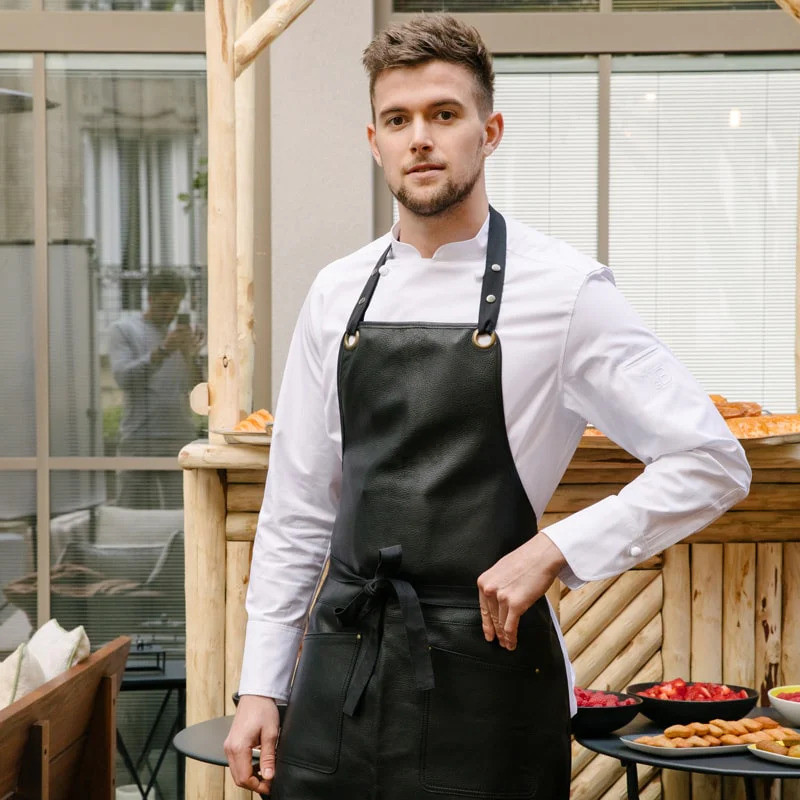 Transformez votre expérience culinaire en un moment de luxe avec notre tablier de cuisine "Mambo". Conçu pour les amateurs de belles choses et les passionnés de la gastronomie, ce tablier en cuir de veau grainé est la quintessence de la qualité et de la praticité.