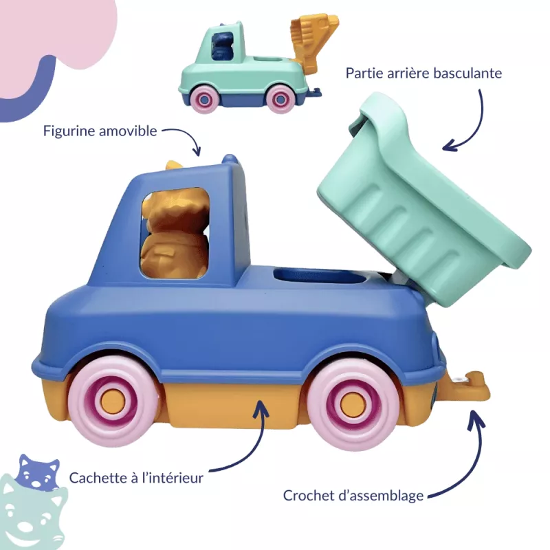 Les camions du coffret sont interactifs avec une partie arrière basculante qui dévoile une cachette secrète, stimulant l'imagination des enfants. Les figurines de renard, incluses, conduisent les véhicules et accompagnent les petits dans leurs aventures, à l'intérieur comme à l'extérieur.
