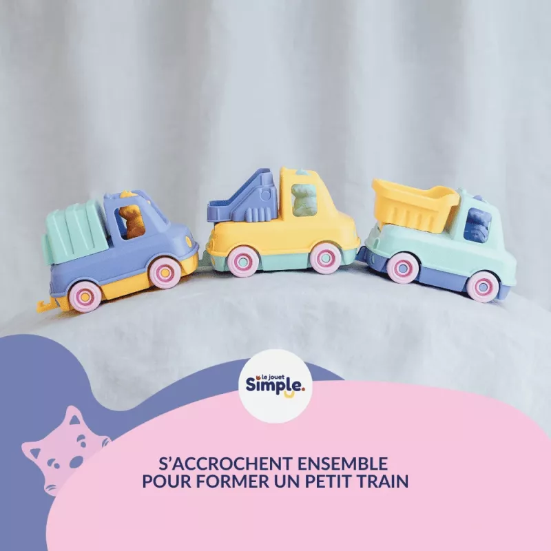 Offrez à votre enfant des heures de jeu ludique et durable avec ce coffret de camions-trains, un jouet parfait pour stimuler la motricité, l’imagination et l’éveil, tout en respectant l'environnement !