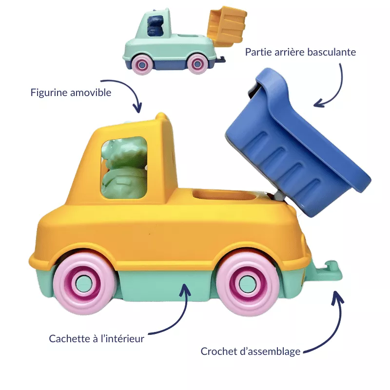 Faciles à nettoyer, les camions sont lavables au lave-vaisselle et leur conception mono-matière permet un entretien optimal.