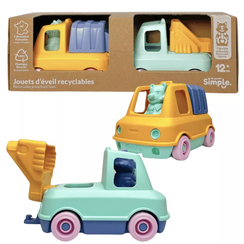 Ce jouet est d'un genre nouveau, fabriqué en France à partir de plastique recyclé, sans colle, métal ni autocollants, et entièrement recyclable. Côté sécurité, les camions sont garantis sans BPA, phtalates ou PVC et ont été testés par un laboratoire indépendant pour assurer qu’ils ne contiennent pas de perturbateurs endocriniens.