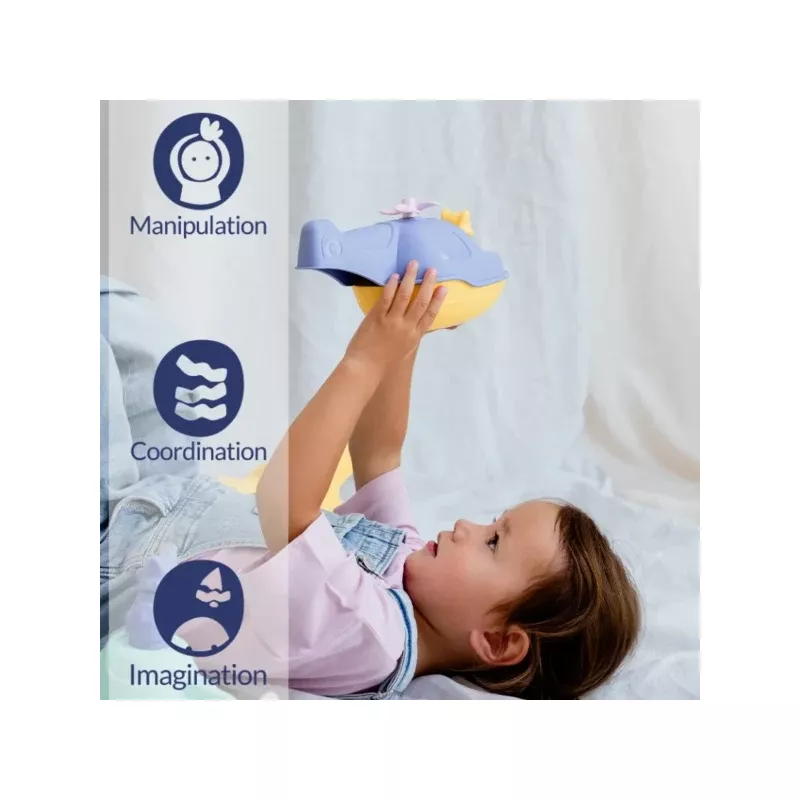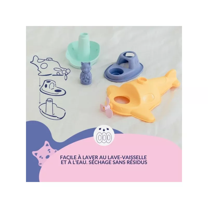 C'est un jouet de bain et d’imagination qui se transforme facilement en bateau flottant ! Conçu pour des aventures dans le bain, à la plage ou même à la maison, ce véhicule d’exploration modulable encourage l’enfant à développer dextérité et sens du jeu en toute sécurité.