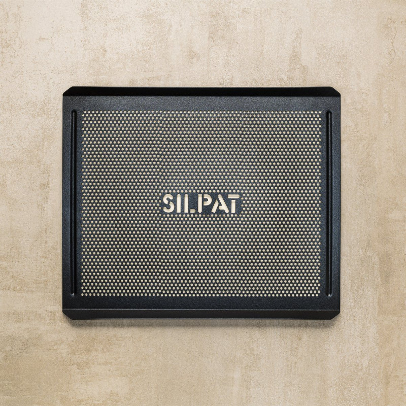 Support essentiel pour la toile et le moule, la plaque perforée assure une diffusion uniforme de la chaleur. Elle peut être utilisée face argentée vers le haut pour la cuisson et retournée pour le refroidissement.