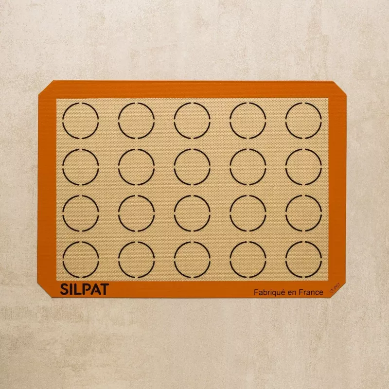 La toile à macarons de Silpat vous assure des coques uniformes et impeccablement calibrées, pour des macarons réussis à coup sûr. Les repères sont intégrés pour un dosage parfait, permettant des coques régulières et une cuisson optimale.