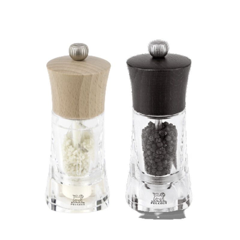 Fabriqués en France, les moulins Oléron allient acrylique transparent et bois naturel pour un design à la fois moderne et authentique : fini chocolat pour le moulin à poivre, fini naturel pour le moulin à sel.